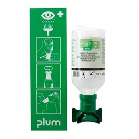Botella lavaojos de emergencia con solución salina al 0.9% de 500 ml. de capacidad._x005F_x000D_\n_x005F_x000D_\nSolución de cloruro sódico al 0.9%._x005F_x000D_\n_x005F_x000D_\nAdecuado para tratar lesiones del ojo producidas por cuerpos extraños como polvo, virutas de madera o metálicas, incluso en accidentes con aceites y disolventes._x005F_x000D_\n_x005F_x000D_\nSu solución se corresponde con la salinidad natural del ojo._x005F_x000D_\n_x005F_x000D_\nSu manguito ocular ergonómico permite aclarar el ojo de manera eficaz._x005F_x000D_\n_x005F_x000D_\nPROCEDIMIENTO DE USO:_x005F_x000D_\n_x005F_x000D_\n1-En primer lugar retire la botella de la estación._x005F_x000D_\n_x005F_x000D_\n2-Gire la tapa en sentido de la flecha hasta romper el precinto._x005F_x000D_\n_x005F_x000D_\n3-Incline la cabeza hacia atrás y presione la botella._x005F_x000D_\n_x005F_x000D_\n4-Incline la cabeza hacia delante si no quiere que se moje la ropa._x005F_x000D_\n_x005F_x000D_\nCapacidad: 0.5 lts._x005F_x000D_\n_x005F_x000D_\n _x005F_x000D_\n_x005F_x000D_\nRecuerde que tenemos muchos más productos y materiales sanitarios disponibles en nuestra tienda.